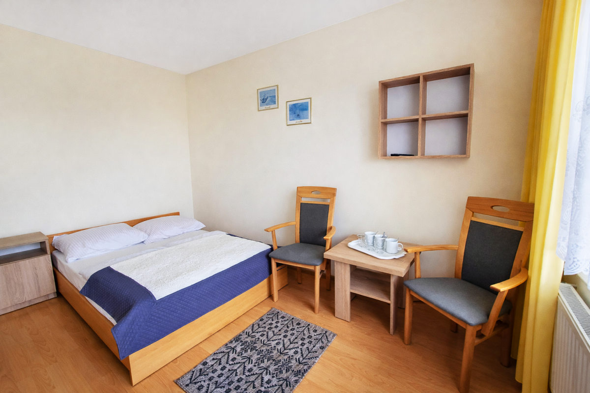 Do zaoferowania mamy ok. 25 miejsc noclegowych w pokojach 2, 3 osobowych oraz studiach 2 + 2 osobowych.